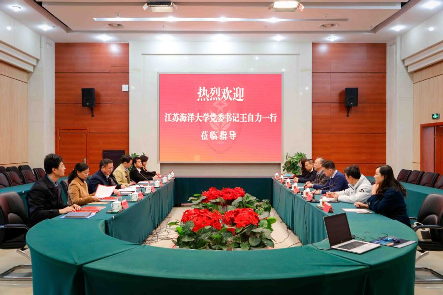 3月22日,江苏海洋大学党委书记王自力一行来访我校,校领导陶书中、冯锋、戴光顺与来宾座谈。