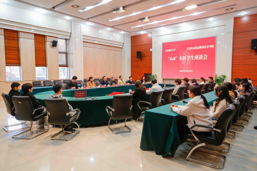 王自力一行还专门看望了“4+0”本科班学生并召开了学生座谈会。学生们就自身的想法和建议和江苏海洋大学的领导进行了深入交流。王自力表示,“4+0”本科班学生是江苏海洋大学和江苏食品药品职业技术学院共有的学生,两校一定尽全力把学生培养好,也希望同学们刻苦学习,圆满完成学业,不断提升理论知识和实践技能。同时欢迎大家到另一个母校江苏海洋大学去学习交流。江苏海洋大学副校长严云洋希望更多加强“4+0”本科班学生和本部的联系,为学生的全面发展提供更广阔的平台。