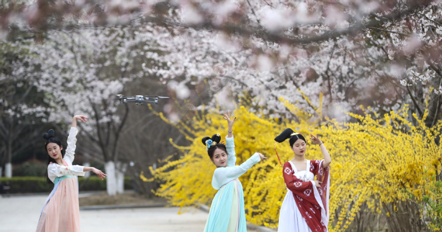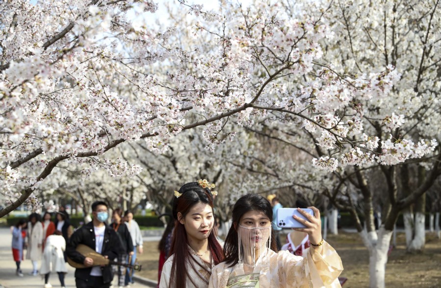 “花朝节”是中国古代盛行于民间的汉族传统节日,俗称“花神节”“百花生日”“花神生日”。2021年3月23日,江苏食品药品职业技术学院举办了一场“花朝节”文化活动,通过汉服雅集 、簪花游园等方式,赏红踏青贺花朝,感受传统文化魅力。