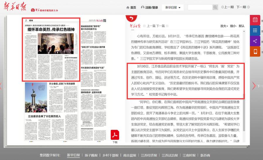 3月30日,江苏食品药品职业技术学院开展了一场以“师生共‘画’党史”为主题的教育活动,号召同学们在周恩来纪念馆寻找历史事件中印象最深的场景,并通过写生、创作、描绘、讲述等方式,在历史资料中缅怀周总理,感悟中国共产党人的初心和共产主义信仰。“历史是最好的教科书。我们践行的实境课堂不仅仅是走入纪念馆接受党史教育,我们更希望学生党员能够寻找到契合自身的沉浸式党史学习方式。”校党委书记陶书中说。