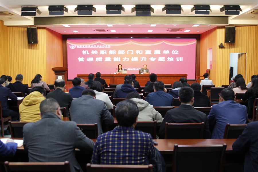 4月21日,学校在第四会议室召开机关职能部门和直属单位管理质量能力提升专题培训会。学校邀请无锡职业技术学院质量监督与控制部主任姜敏凤教授作题为《职能部门在质量体系中的作用》专题报告,会议由副校长安进主持。