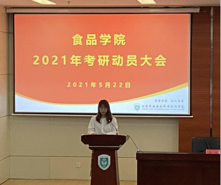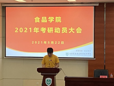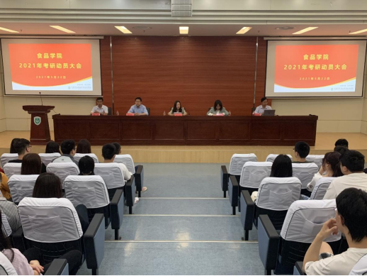 2021年,食品科学与工程(4+0)本科专业考研取得较好成绩,考研录取率近50%,食科171班10名同学分别被江苏大学、上海海洋大学、浙江理工大学、湘潭大学、北京工商大学和上海电力大学等院校录取。本次考研动员大会的召开,使食品专业同学们对考研流程、专业选择、复习备考等方面有了更深入的了解,激发和增强了同学们的考研热情和信心,为我院考研工作再创佳绩打下良好基础。