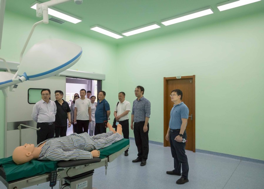 冯锋陪同张杰一行参观了啤酒、黄酒、白酒实训中心、护理实训中心、食品药品研究院、智慧教室及学业支持中心等,我校以生为本的教育理念、鲜明的办学特色、优美的校园环境都给来宾留下了深刻印象。