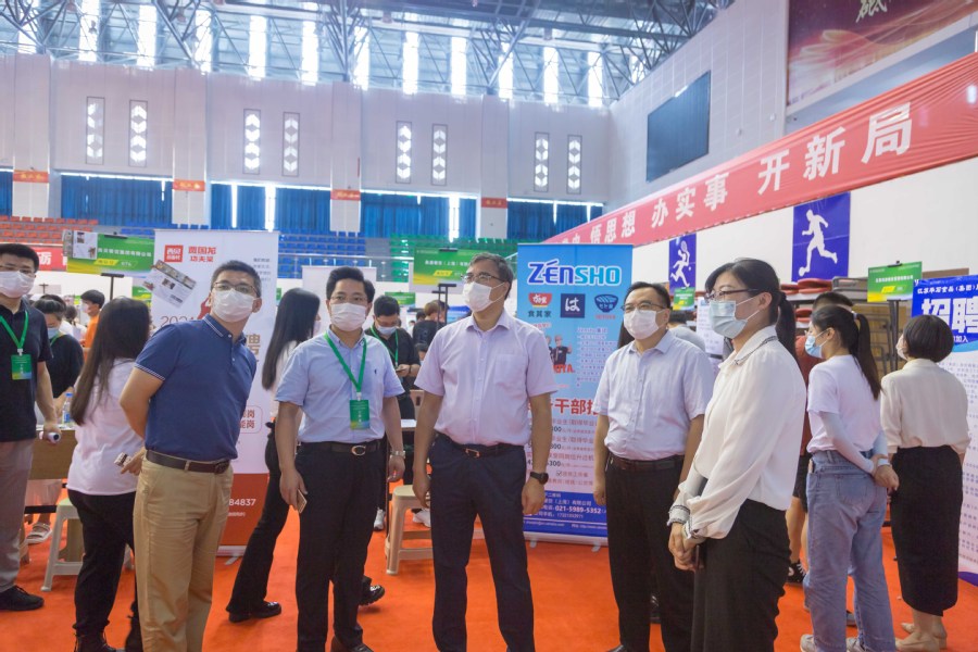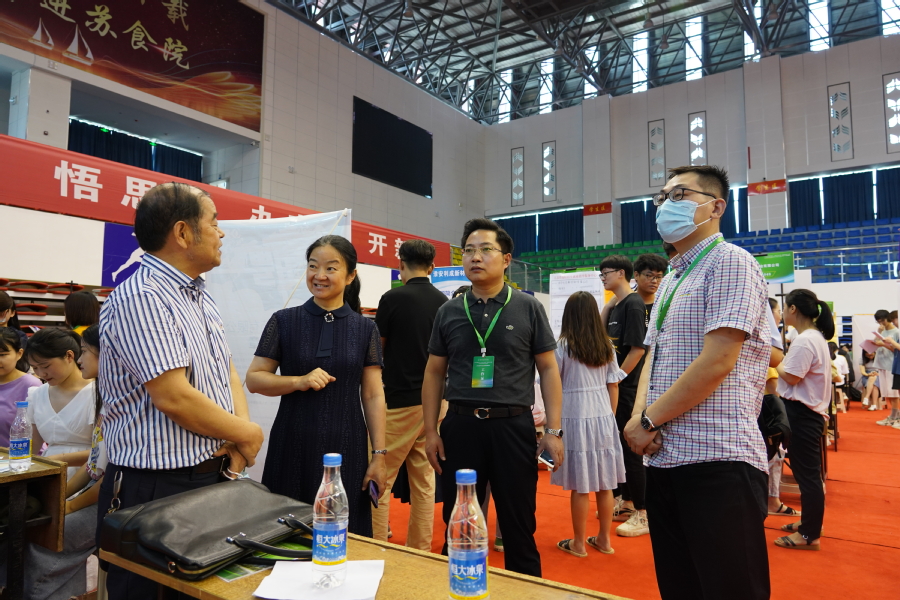 为贯彻落实党中央、国务院“稳就业”“保就业”决策部署,深入开展“为民服务办实事 聚力增效促就业”实践活动,7月9日至11日,我校在体育馆举办“江苏省高校毕业生‘百校千场万岗’就业促进行动暨江苏食品药品职业技术学院2022届毕业生专场招聘会”。江苏省高校招生就业指导服务中心主任胡建平,信息服务部副部长王华莅临招聘现场指导工作,了解我校毕业生就业工作总体情况、促进毕业生就业创业工作举措以及本次招聘会筹备工作情况,并与用人单位、毕业生亲切交谈,了解招聘情况。副校长翟玮玮、张建华陪同视察。
