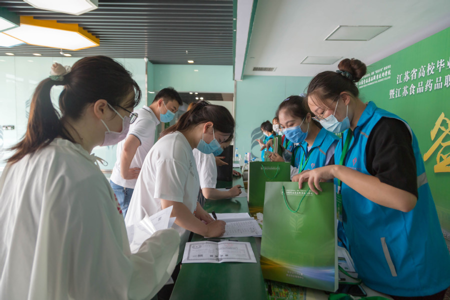 根据疫情防控要求,本次专场招聘会分三天、三个专场举行,分别为食品、酒店类专业专场,药品、制药类专业专场和护理、健康、财贸、机电、信息类专业专场,共吸引中粮东海粮油工业有限公司、江苏雨润肉食品有限公司、卡士酸奶有限公司、扬子江药业集团有限公司、正大天晴药业集团股份有限公司、雷允上药业集团有限公司、苏果超市有限公司、淮安西游乐园有限公司、常州钟恒新材料股份有限公司等342家食品药品行业领先企业来校招聘,提供就业岗位18927个。此次专场招聘会,就业创业指导中心联合团委还同步举办了“直播荐岗”活动,近千名毕业生在线观看了网络直播,该活动通过搭建线上线下就业岗位发布与对接平台,将岗位信息采用线上直播、线下面试相结合的方式,面向我校应往届毕业生进行岗位推荐。