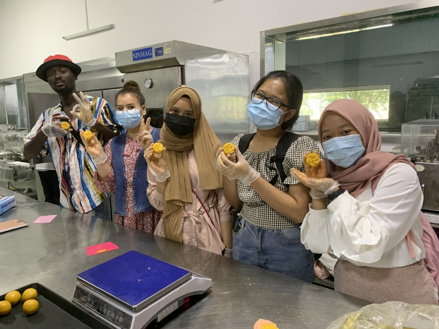 很快,金灿灿的月饼出炉了,留学生们迫不及待地包装好自制的月饼。突尼斯女生娜迪亚开心地表示,“我想拍照发给我的爸爸妈妈看,跟他们一起分享!”
