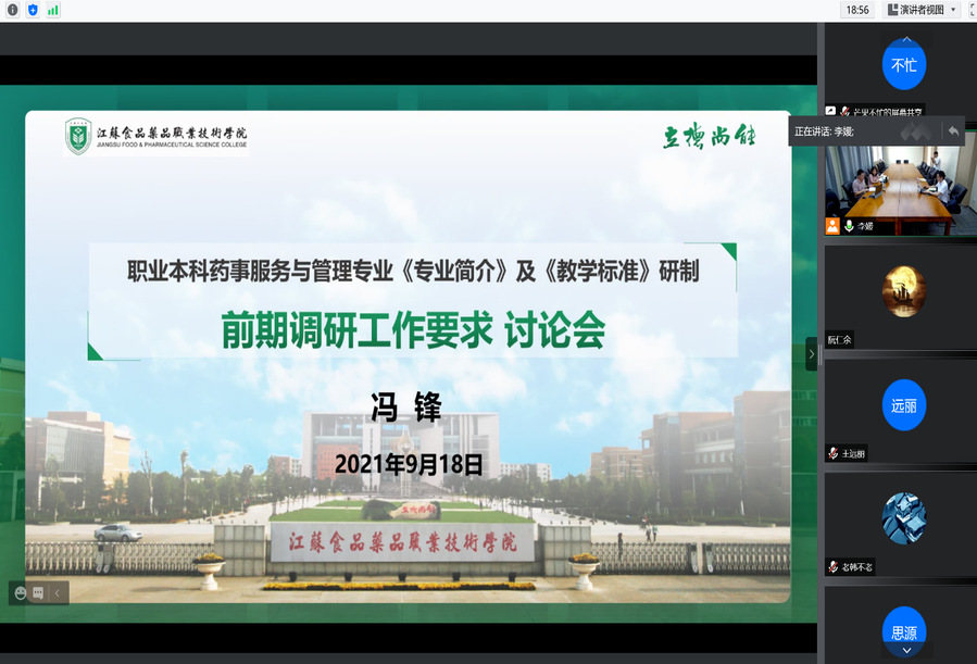 来自江苏医药职业学院、金华职业技术学院、广东食品药品职业学院、山东药品食品职业学院等17所中高职职业院校的20位研制组成员参加了本次线上研讨会。