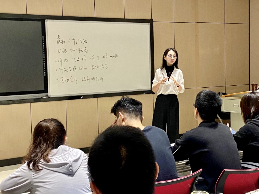 心理中心主任李婉君通过真实案例的分享向辅导员们介绍了心理危机干预的六个阶段,详细介绍了需要重点关注人群以及面对特殊情况等议题的处理;最后特别提醒在座的辅导员,学校心理危机工作中的五级人员梯队建设,强调“系统联动”的重要性。