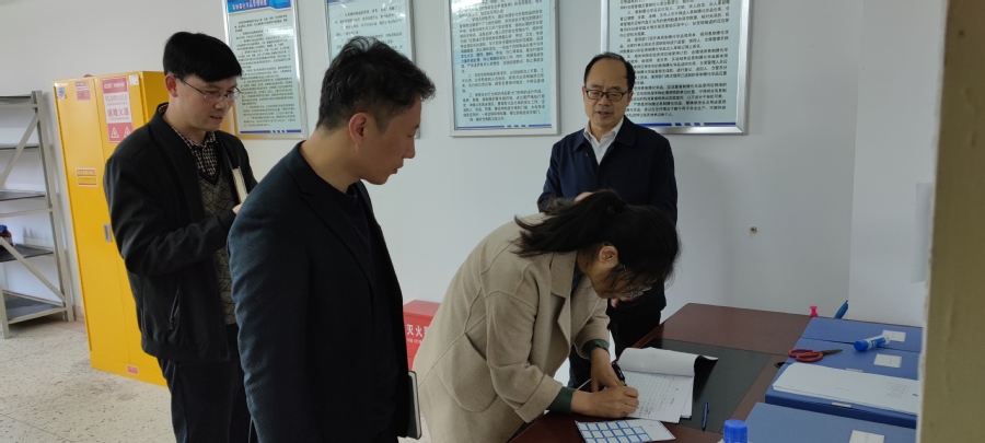 10月25日上午,为加强我校实验实训室安全管理,教务处对食品药品研究院化学品管理与使用进行专项检查。在本次检查中,研究院危化品仓库药剂管理及领取手续完备,总体情况较好。各公共实验室消防应急设备配置较为齐全,师生安全防范意识较高。但是部分科研实验室中,老师领用药剂后的管理与存放存在安全隐患,未做到按需领取用,按时归还。教务处处长贾韶千、食品药品研究院院长陆正清就这一问题进行沟通。陆正清表示今后将加强科研类实验室药品管理,未用完的危化品试剂每天下班后将统一存放,专人保管,坚决将安全隐患扼杀于摇篮之中。