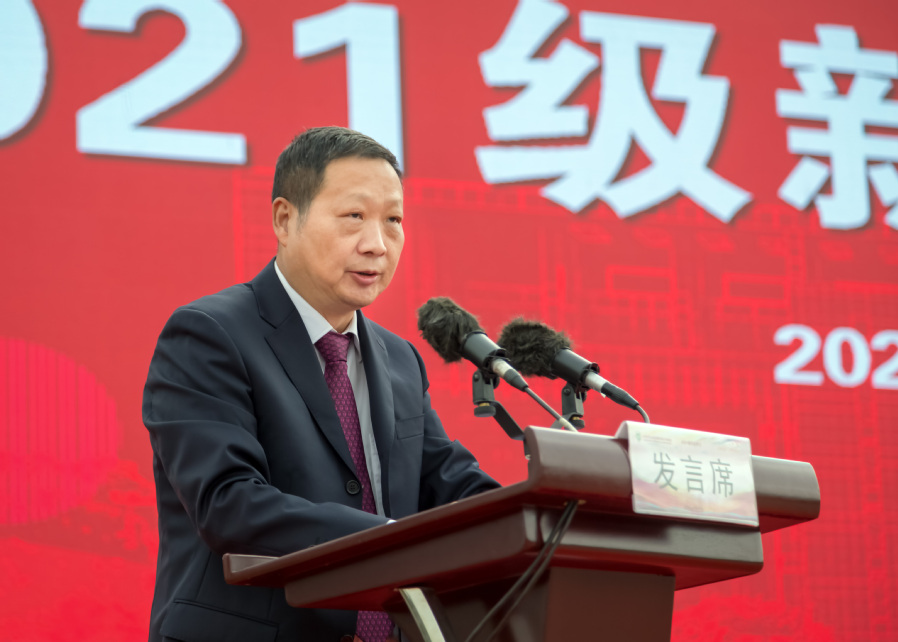 校长冯锋以《绽放最美青春 逐梦伟大时代》为题,向所有新生寄语。他指出2021年是充满荣光、写满梦想的一年,伟大的中国共产党历经风雨洗礼,迎来了百年华诞,开启了伟大复兴新征程。站在“两个一百年”历史交汇点,历史已经将大家放在了赓续民族复兴伟业的关键位置,这注定要将自身的荣耀和伟大祖国紧密相连。