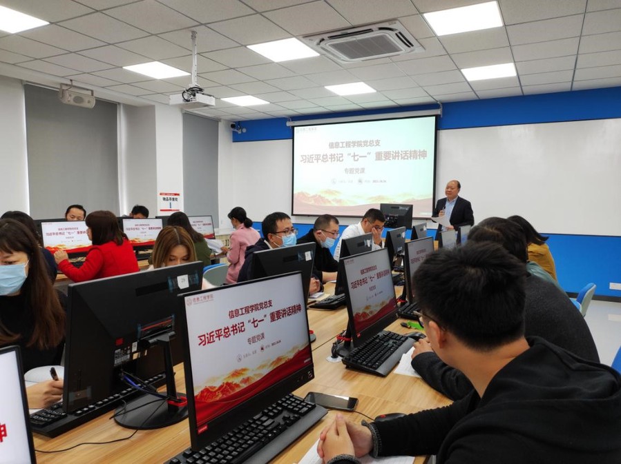 为进一步学习贯彻习近平总书记“七一”重要讲话精神,弘扬伟大建党精神,推动学校高质量发展,副校长安进分别于10月26日下午、10月28日下午为信息工程学院全体教职工、后勤党总支班子成员上了题为“砥砺百年筑伟业 起航奋进新征程”的专题党课。