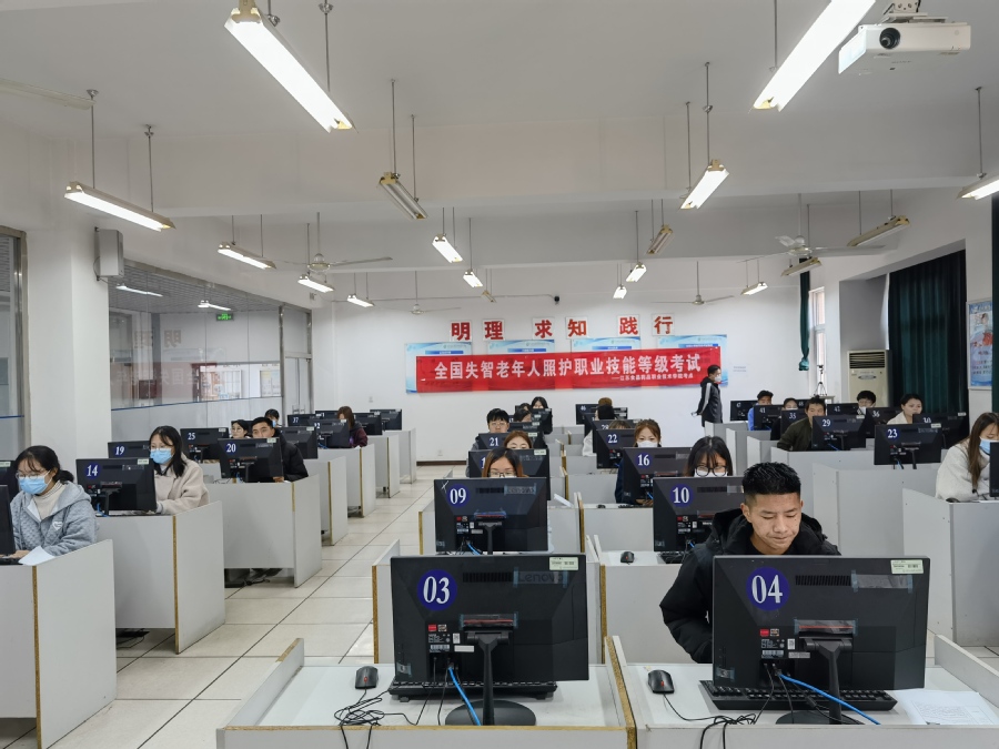 为推进1+X证书制度试点工作, 11月13日,“1+X”失智老年照护职业技能等级证书考试在我校顺利举行,健康学院53名同学参加了考试。