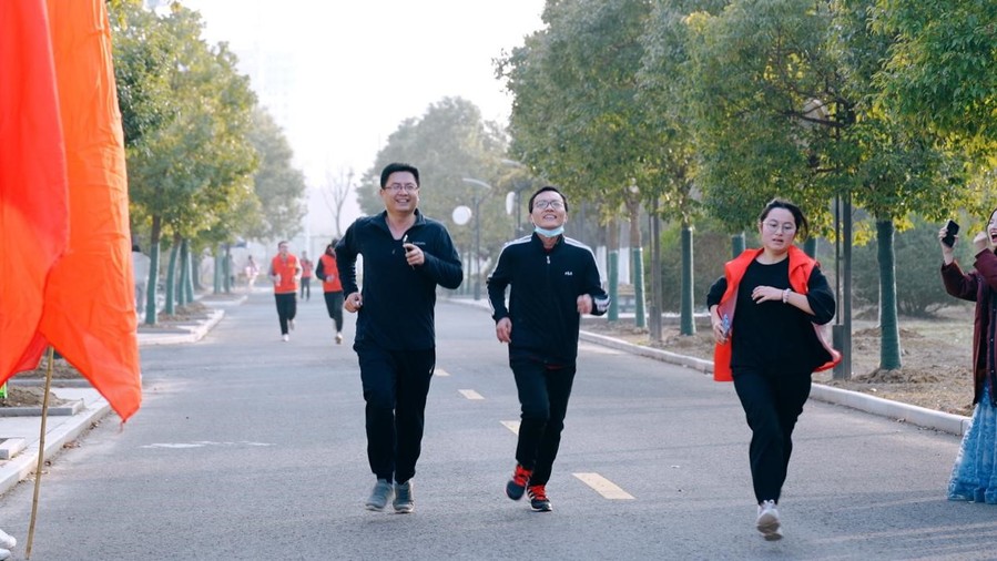在赛前热身完毕后,大家来到比赛集结点,伴随着一声枪响,校园首届红色迷你马拉松正式开跑。