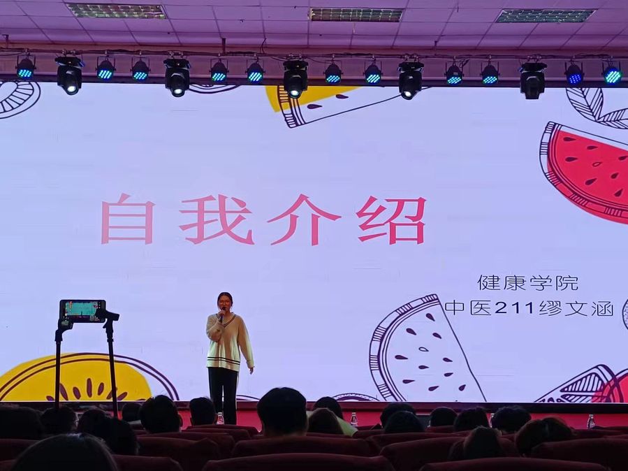 本届比赛来自全校10个学院的选手27多名选手报名参赛,经过预赛的激烈角逐,最终有12名同学杀进决赛。决赛分为“自我介绍与才艺展示”“配乐朗诵”“即兴评述”三个环节。在“自我介绍与才艺展示”环节选手们各显神通,有抑扬顿挫的朗诵《沁园春.雪》,悠扬动听的歌唱表演《日不落》,还有高难度的话剧“独白”。“即兴评述”环节中,选手们充分展示了作为主持人的基本素质,面对最新的时事新闻,选手们沉着应对,或轻松幽默、或清新自如、或义正言辞,充分展示了自己的主持风格和水平。最终,药学205班李嘉鑫同学摘得冠军,财务211张钰璘、中医211缪文涵获得亚军,食检211王颖、财务211董子贤、护理学院孙未获得季军。