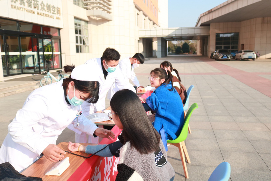 冬季是呼吸道疾病的高发期,稍有不慎就会被流感病毒等病毒“盯上”,护管部与南丁格尔社团的成员们为同学们讲解了冬季卫生知识的一些注意事项,比如:外出需要佩戴口罩和保持社交距离可以有效阻隔病毒的传播,既保护了自己又爱护了他人;还有养成良好的生活习惯,早睡早起,坚持体育锻炼提高身体素质,增强身体对寒冷的抵抗能力。护管部与南丁格尔社团的成员们还为有需要的同学测量血压。有位食品学院的同学测量血压偏低,马娜老师立即询问该同学的情况,为该同学进行低血压的相关指导。
