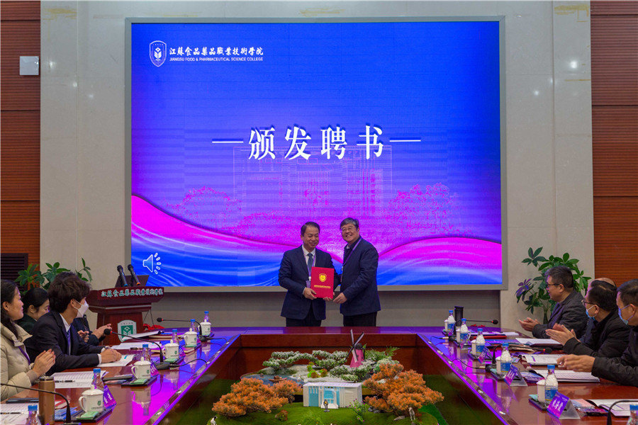 会议审议并通过了江苏食品药品职业技术学院合作办学理事会增补理事成员名单,理事长胡晓抒为增补理事颁发了聘书。