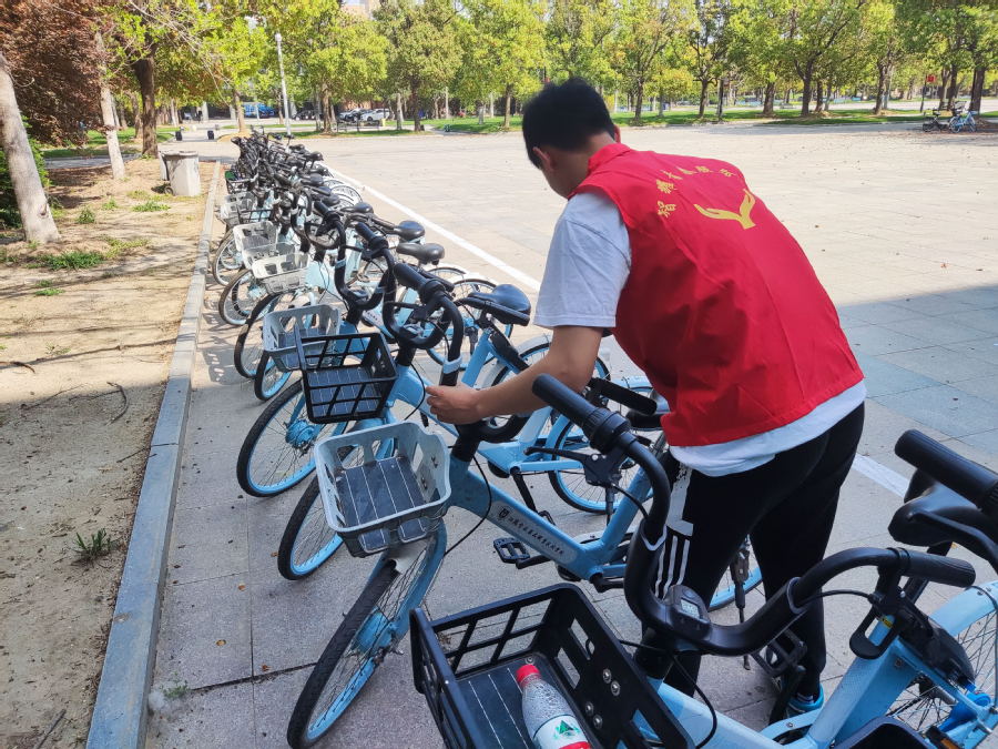 活动包括图书馆卫生清扫、校园共享单车整理、芍药基地杂草清理等志愿服务。志愿者们提前规划,分组行动。团员志愿者们将操场、实训楼等建筑前随意摆放的单车进行整理,按顺序整齐摆放到规定的停车区域内,并将地面上和散落在车筐的垃圾和落叶进行了清理。党员志愿者们来到图书馆,将各间阅览室的垃圾筒清理干净,换上干净的垃圾袋,将书桌进行了擦拭。学生会志愿者们来到六号实训楼的芍药和牡丹种植园,进行拔草、松地、浇水等活动,为同学们营造美丽整洁的校园环境。
