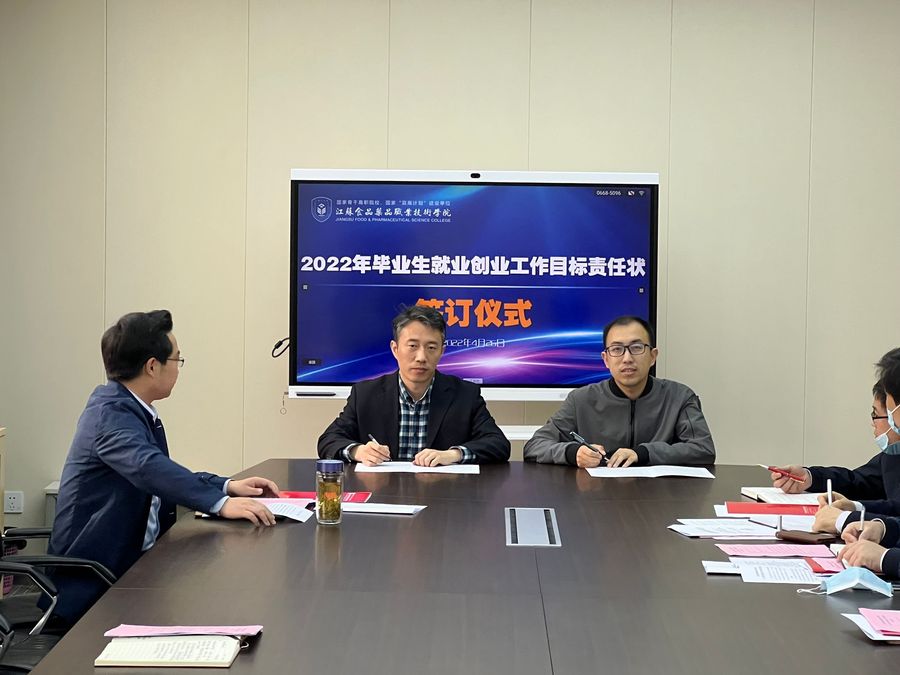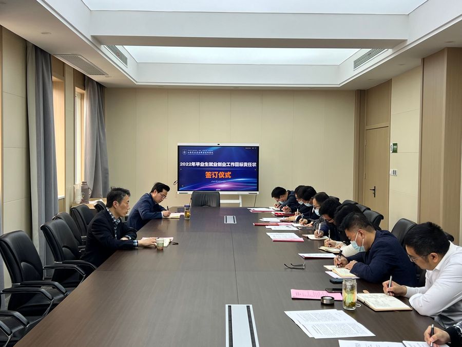会上,贾韶千与各二级学院院长签订了《2022年毕业生就业创业工作目标责任状》。