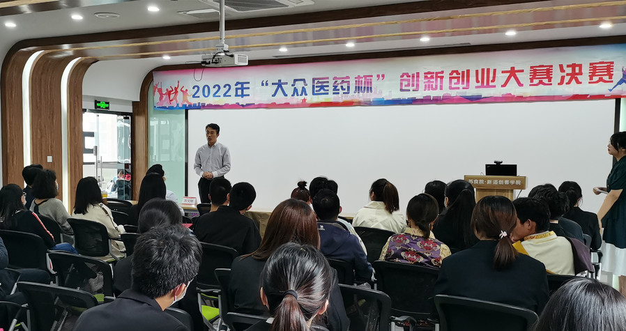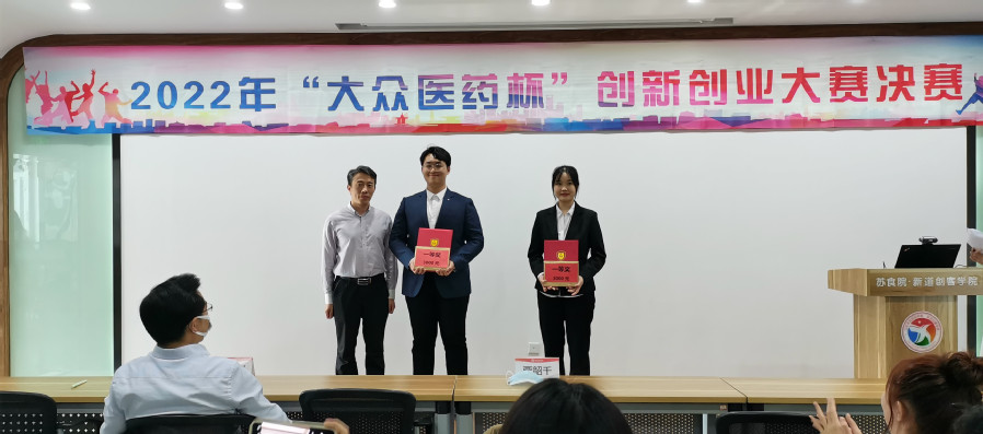 5月12日下午,我校2022年“大众医药杯”创新创业大赛决赛在苏食院•新道创客学院路演大厅举行。党委委员、副校长贾韶千,产教融合办公室主任、创新创业学院院长於文刚出席颁奖典礼,并为获奖团队颁奖。