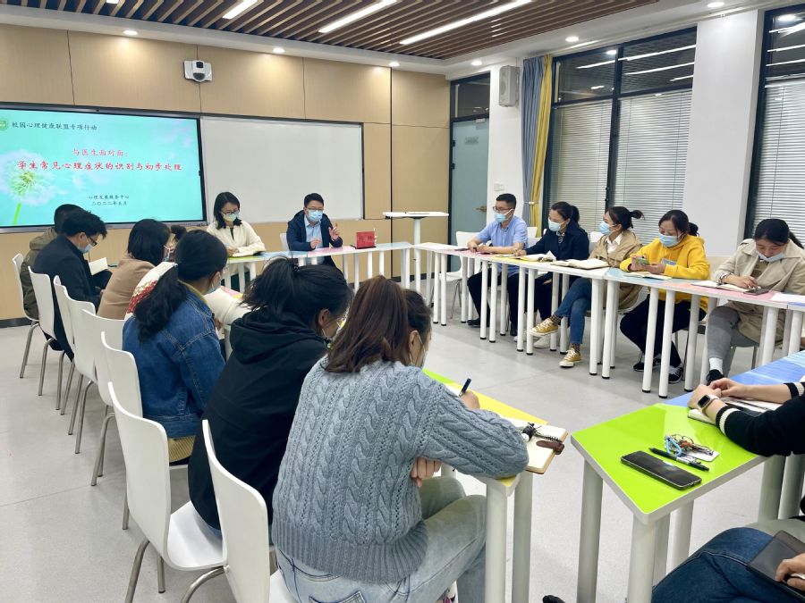 为积极应对疫情防控形势,做好校园封闭管理期间学生教育管理与心理危机干预工作,5月13日下午,学工处心理发展服务中心举办专题论坛——学生常见心理疾患症状识别和初步处理,邀请合作医院淮安市第三人民医院医学心理科主任杨林主任医师主讲。论坛由心理发展服务中心主任李婉君主持。