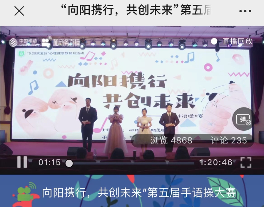 本届手语操比赛是“5.25我爱我”心理健康教育月系列活动之一。本次活动有助于大学生在感受、展示手语魅力的同时,培养团队意识和合作精神,促进非言语的人际沟通与交流,提升大学生的心理健康水平。
