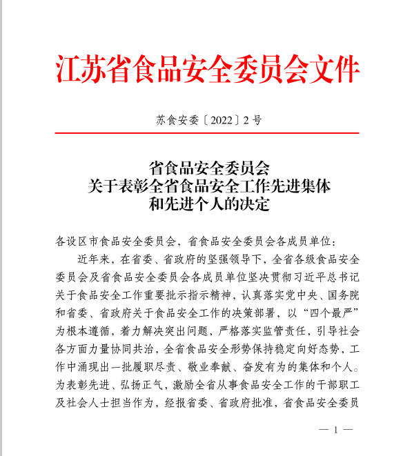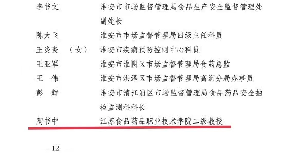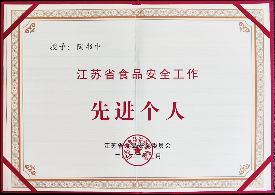 日前,江苏省食品安全委员会发布《关于表彰全省食品安全工作先进集体和先进个人的决定》,我校陶书中书记被授予“江苏省食品安全工作先进个人”称号。