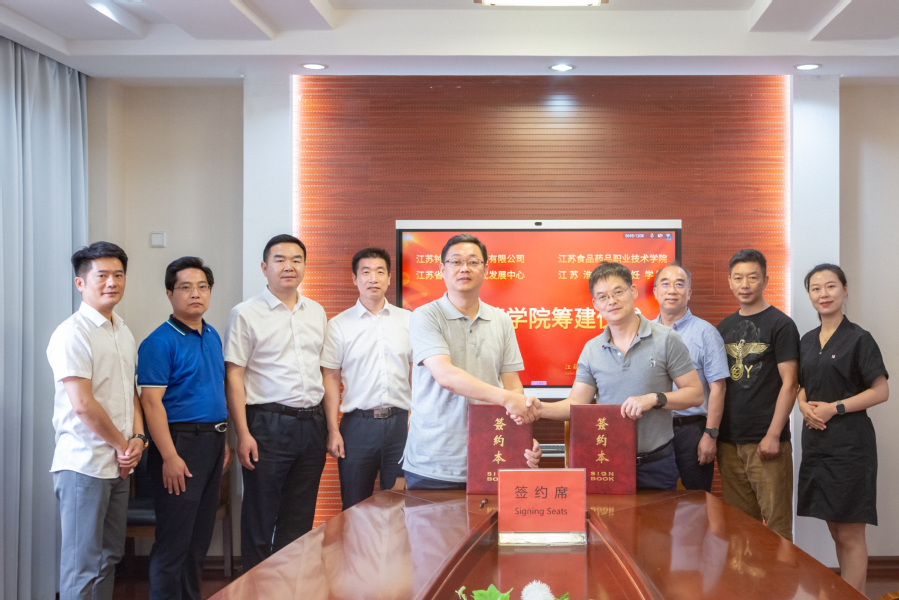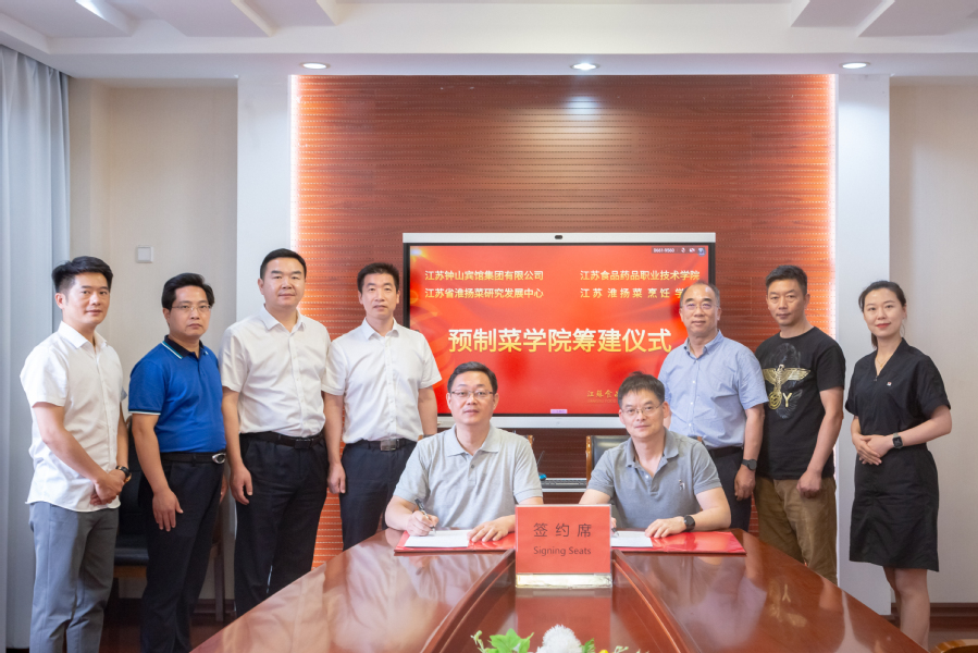 6月21日下午,江苏食品药品职业技术学院、江苏钟山宾馆集团有限公司(江苏省淮扬菜研发中心)就预制菜学院的筹建及双方的校企合作进行了深度洽谈,并签订了预制菜学院筹建合作协议。我校党委书记陶书中、校长冯锋、副校长贾韶千,江苏钟山宾馆集团党委委员、副总经理、江苏省会议中心(钟山宾馆)党委书记、董事长嵇冲、钟山集团电商总经理王新国等出席会议。江苏果然草本科技有限公司总经理沈志清一并出席会议。