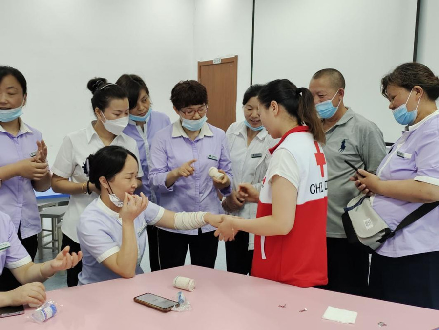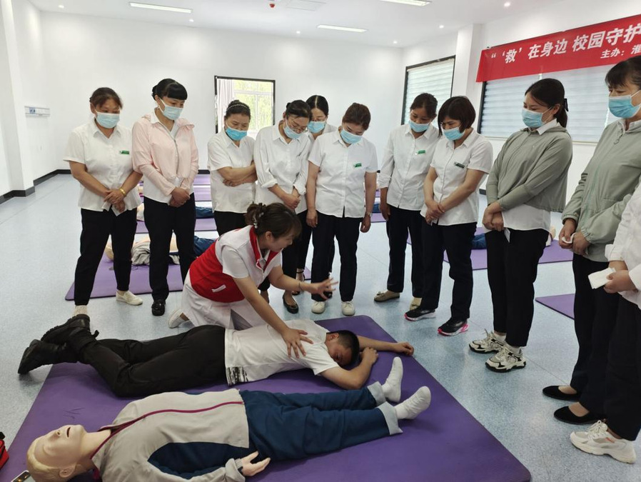 为深入贯彻落实省委省政府《关于在全省学校开展“救在身边۰校园守护”行动的通知》要求,进一步提高我校校园应急救护能力,7月8日上午,护理学院联合淮安市红十字会为我校后勤处员工开展“救在身边۰校园守护”应急救护员培训。