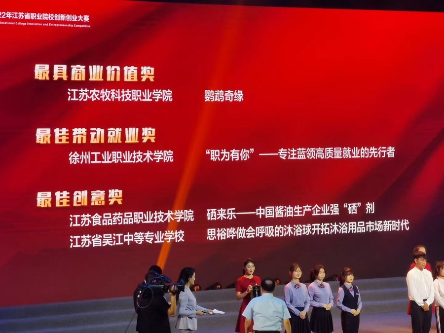 7月24日–26日,江苏省职业院校创新创业大赛决赛在江苏农牧科技职业学院圆满落幕。我校参赛团队敢闯会创,再创佳绩,喜获一等奖4项、二等奖2项、三等奖5项,“硒来乐——中国酱油生产企业强‘硒’剂”项目荣获“最佳创意奖”,学校再次被授予“优秀组织奖”,取得我校自参加江苏省“互联网+”大学生创新创业大赛以来历史最好成绩!