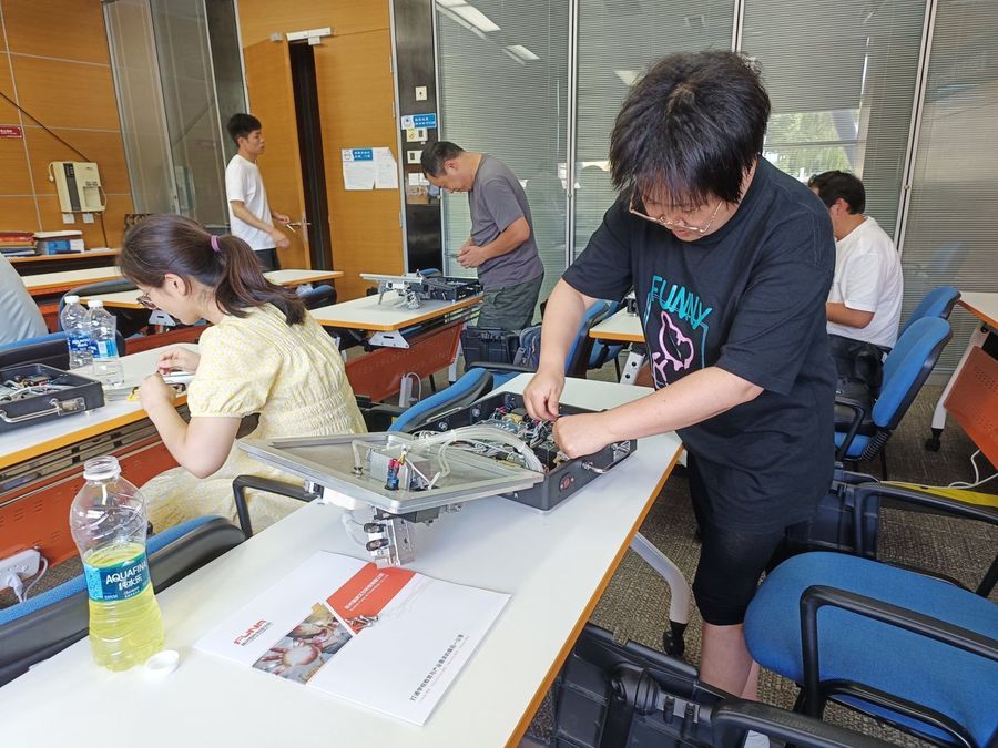 在为期5天的培训中,富纳智能制造学院邀请了行业专家为教师们作了《产业学院:校企合作4.0》、《1+X书证融通与复合型技术技能人才培养》等多个培训讲座。富纳工程师为教师们分别进行了机械设计和工业视觉系统运维培训的培训课程,培训内容涉及人机互联、设备组装、工业视觉基础知识、线体总控及单机操作和线体机械手操作等理论知识和实操技能,让参训教师体验了“工业视觉”的多种应用场景,提升了教师的专业教学能力和实践技能。