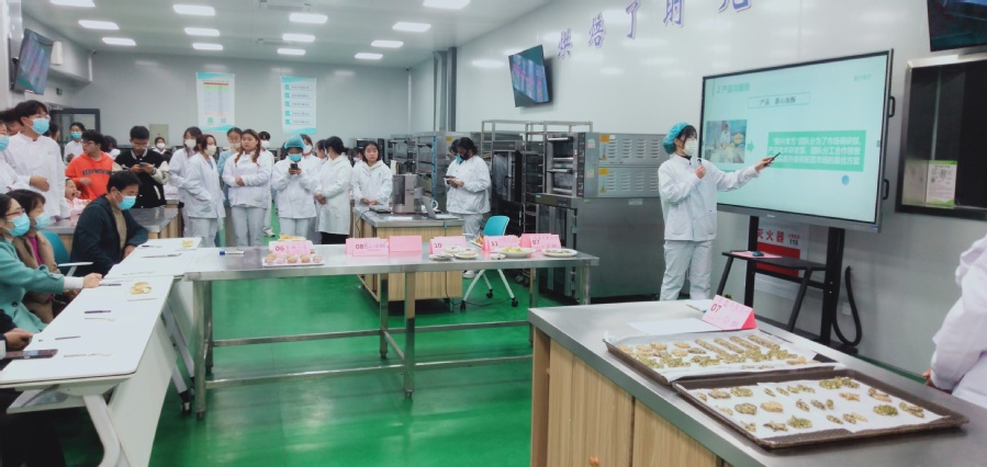 大赛分为前期产品设计、中期试验产品、最终进行产品成果展示以及汇报三个部分,共有11组团队80余名同学参赛。各团队参赛项目按照产品配方创新、外观创新、工艺创新、社会价值、竞争分析、客户定位、市场分析等内容来进行前期设计产品。中期各团队成员利用课余时间不断进行试验,来完善产品。最后各团队将做好的产品进行现场展示、PPT路演汇报,由食品学院教工第一党支部的6位教师和现场80名观众打分,共产生一等奖1组、二等奖3组、三等奖3组、优秀奖4组。