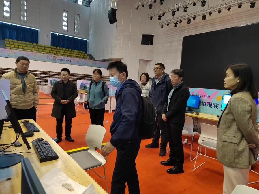 3月5日,“中国银行杯”2023年江苏省职业院校技能大赛虚拟现实(VR)设计与制作赛项专家组莅临我校,检查指导我校赛项承办准备工作。学校副校长贾韶千热情接待专家组一行。