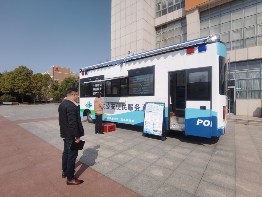 便民服务直通车依托车载自主体检机,便携照相机、无线上网终端、窗口办证设备、广播宣传屏,可以提供户籍、身份证、车驾管、出入境等163项证件办理,并同步开展反诈安防宣传,实现“一车通办、一站办理、综合服务、省时省心”,是市公安局的一种创新服务模式。