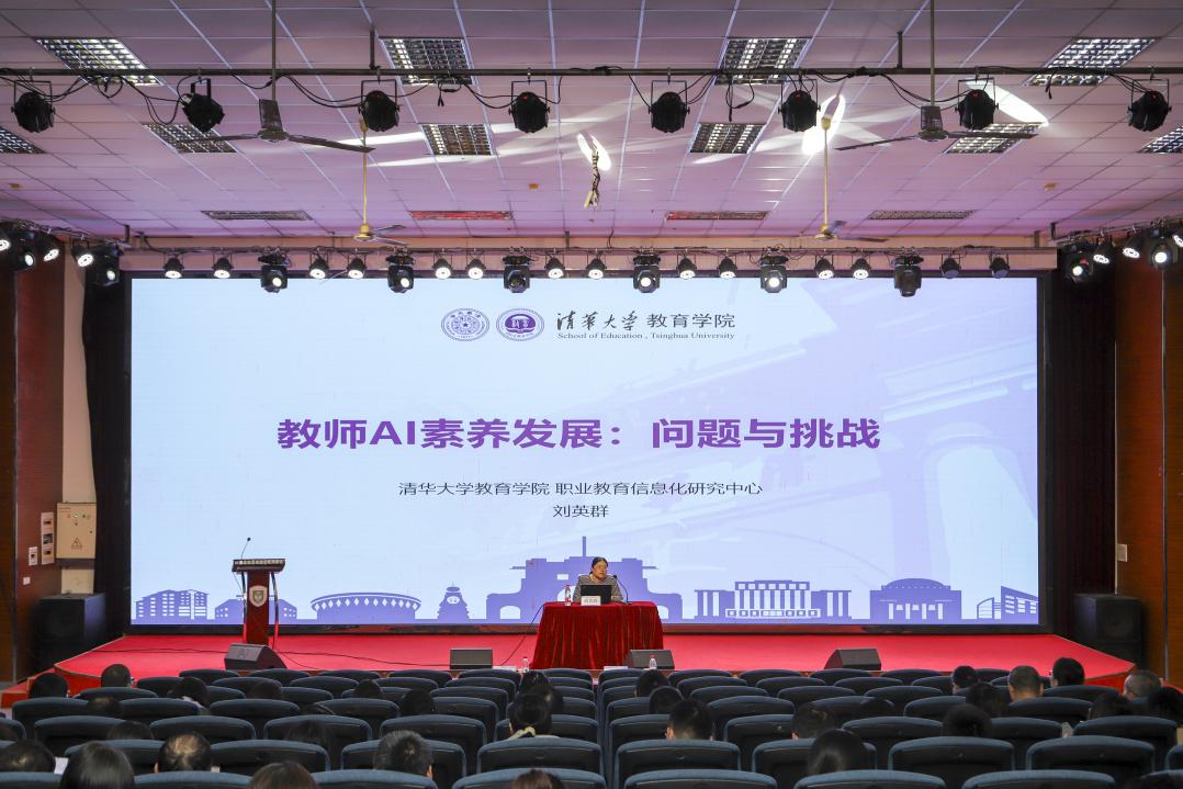 启动仪式后,清华大学教育研究院职业教育信息化研究中心副主任刘英群博士应邀作《职业院校教师AI素养现状与挑战》专题报告,进一步拓宽了教师对AI与教育融合的视野。