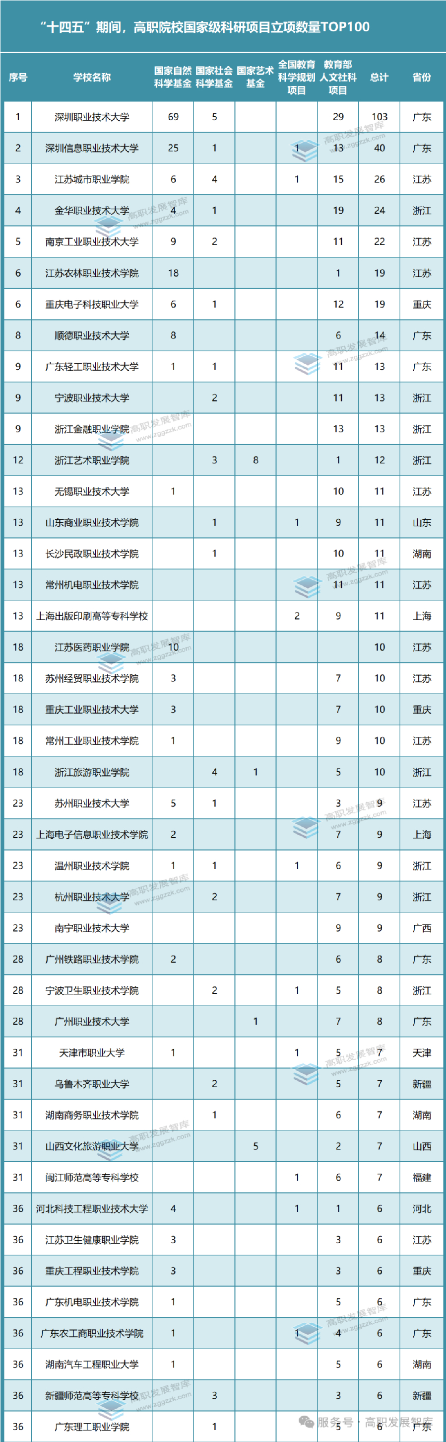 在“十四五”规划收官与第二轮“双高计划”启航的关键之年,高职发展智库通过对国家自然科学基金、国家社会科学基金、国家艺术基金、全国教育科学规划项目、教育部人文社科项目五类国家级科研项目的系统梳理,发布全国高职院校科研实力榜单。我校凭借4项国家级科研项目立项的亮眼成绩,成功跻身全国百强,位列第69位,科研创新实力获得权威认可!