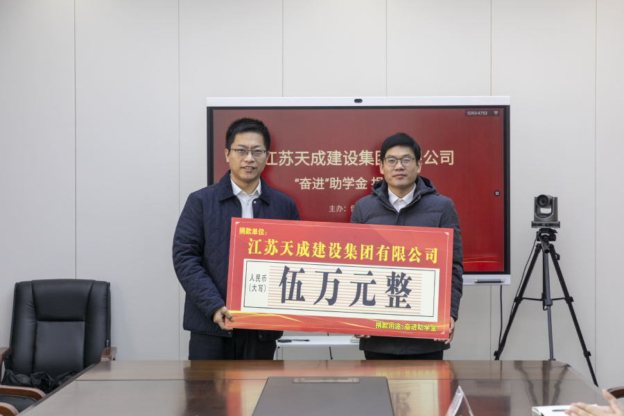 江苏天成建设集团有限公司此次在我校健康医学院设立“奋进奖学金”,旨在激励优秀学生奋发图强,学院将从在校在籍困难生中评选出品学兼优的学生进行评审和推荐,每年奖励金额为5万元,此次捐赠将进一步激发我校学子的学习动能,提升育人成效。