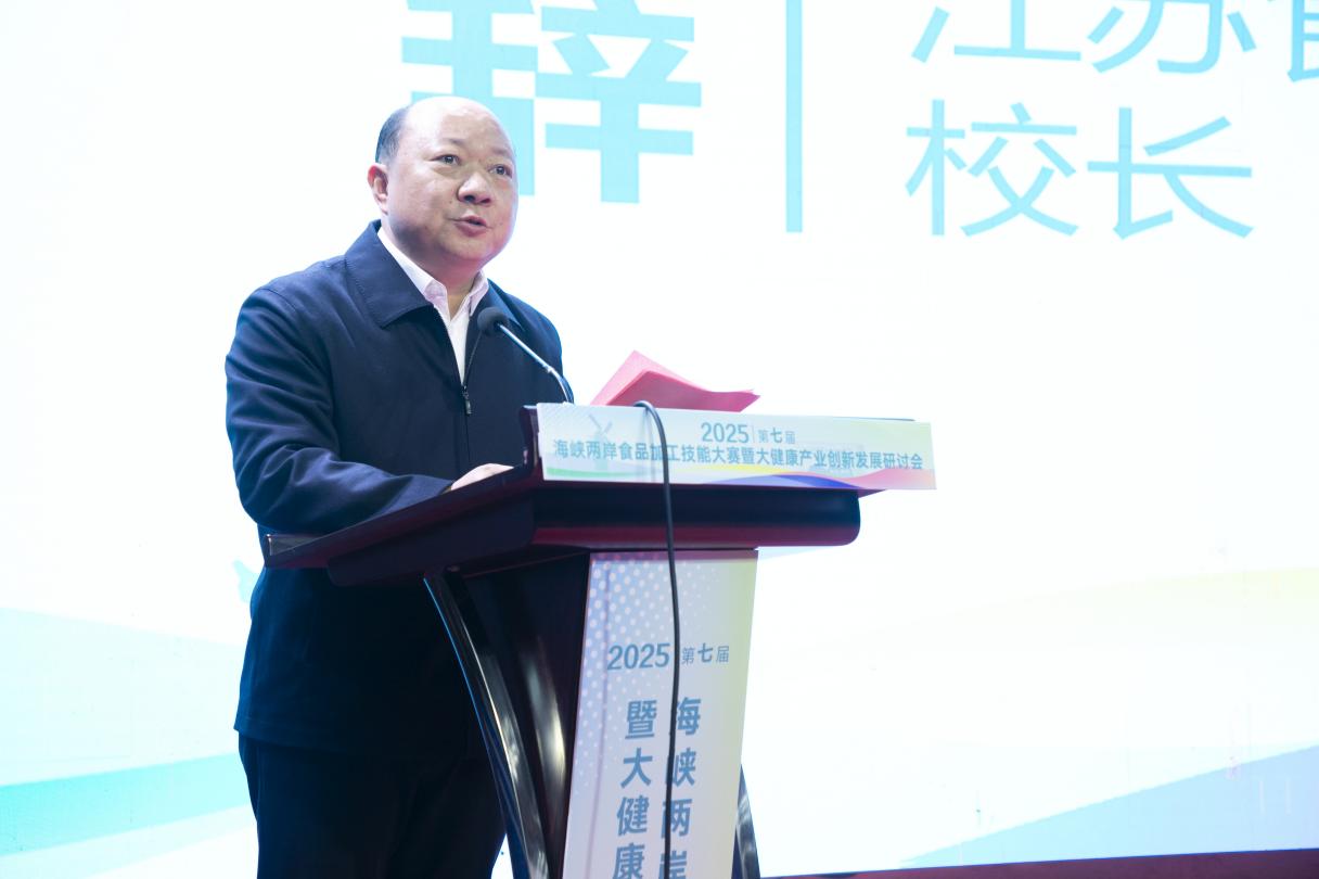 11月26日至11月28日,2025第七届海峡两岸食品加工技能大赛在我校举行。江苏省台办三级调研员吴长征、我校校长安进、淮安市侨办主任蔡昀、淮安市台办副主任徐宜祥、台湾高雄科技大学教授黄世钰、民革淮安市委会副主委董进出席开幕式,开幕式由我校副校长焦宇知主持。本次大赛汇聚了来自大陆和台湾地区的13所院校120名优秀选手,围绕“糕点制作”“中式烹饪”“营销创意”“健康照护”四个赛项,以“团圆”“融和”“老味道,新传承”“幼有所育、幼有善育”为主题展开技能交流与角逐。