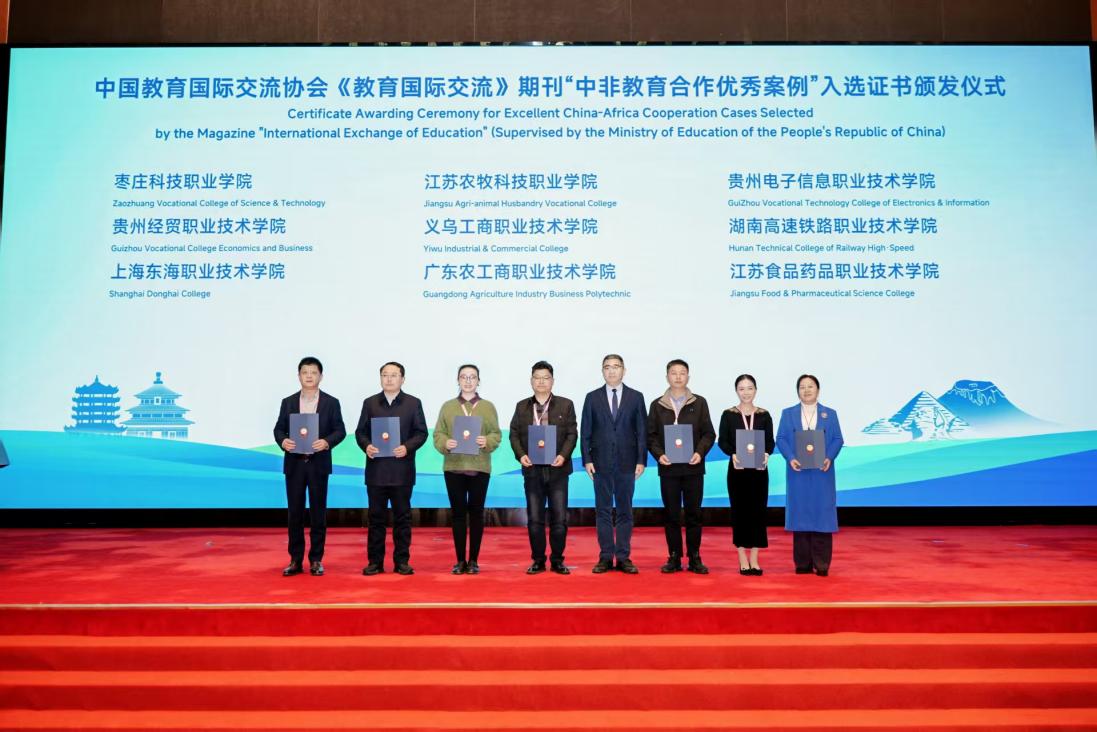 2025中非创新合作与发展论坛在武汉东湖国际会议中心举办,我校在会上上获多项表彰。我校《食品检验检测技术》课程标准获摩洛哥职业教育与就业发展办公室(OFPPT)认证,撰写的案例《“标准定向,素养融合,跨境互通”:打造中非“语言+技能”融合职教一体化新范式实践研究》入选中国教育国际交流协会《教育国际交流》期刊“中非教育合作优秀案例”。布基纳法索海外教育部授予我校副校长焦宇知“中非职业教育中国教育合作专家”称号,近年来,学校深耕中非职业教育合作,输出中国教学资源和标准,未来,学校将继续深化与非洲院校及企业的合作。