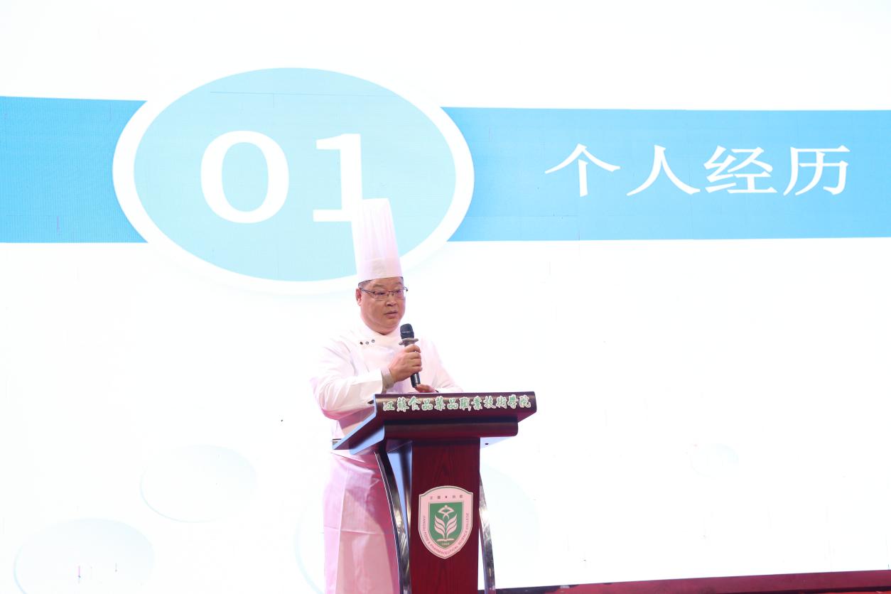 随后,中国烹饪大师、江苏工匠、酒店学院张胜来教授以“新时代、新技能、新梦想——工匠成长之路”为主题,结合自身二十几年的丰富阅历,生动讲述了一名工匠的坚守与突破。他的分享深入浅出,情感真挚,让在场学子对“精益求精、守正创新”的工匠精神有了更深刻的体悟,也为他们的职业发展树立了鲜活榜样。