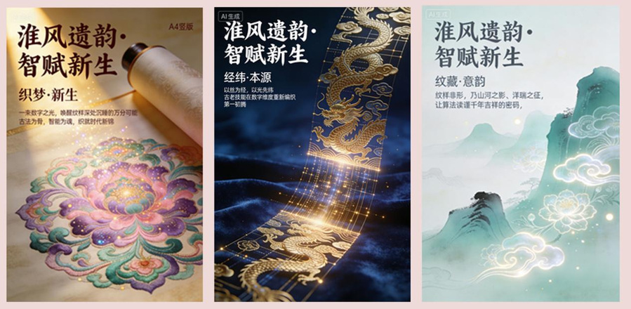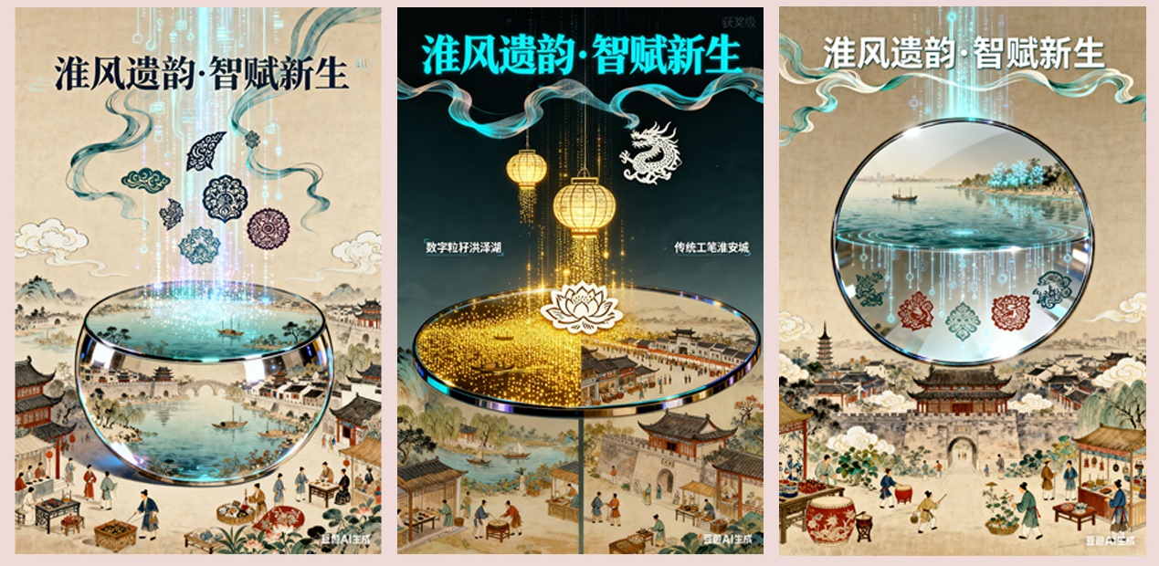近日,由人工智能学院主办的“淮风遗韵·智赋新生”AI+淮安非遗数字创作大赛圆满结束。大赛围绕淮安非物质文化遗产的数字化创新展开,鼓励学生运用AIGC技术对韩信传说、洪泽湖渔鼓、淮剧、金湖剪纸、涟水云锦等本地非遗项目进行视觉重塑与叙事重构。作品覆盖AI非遗数字形象设计、数字艺术创作等多个类别。