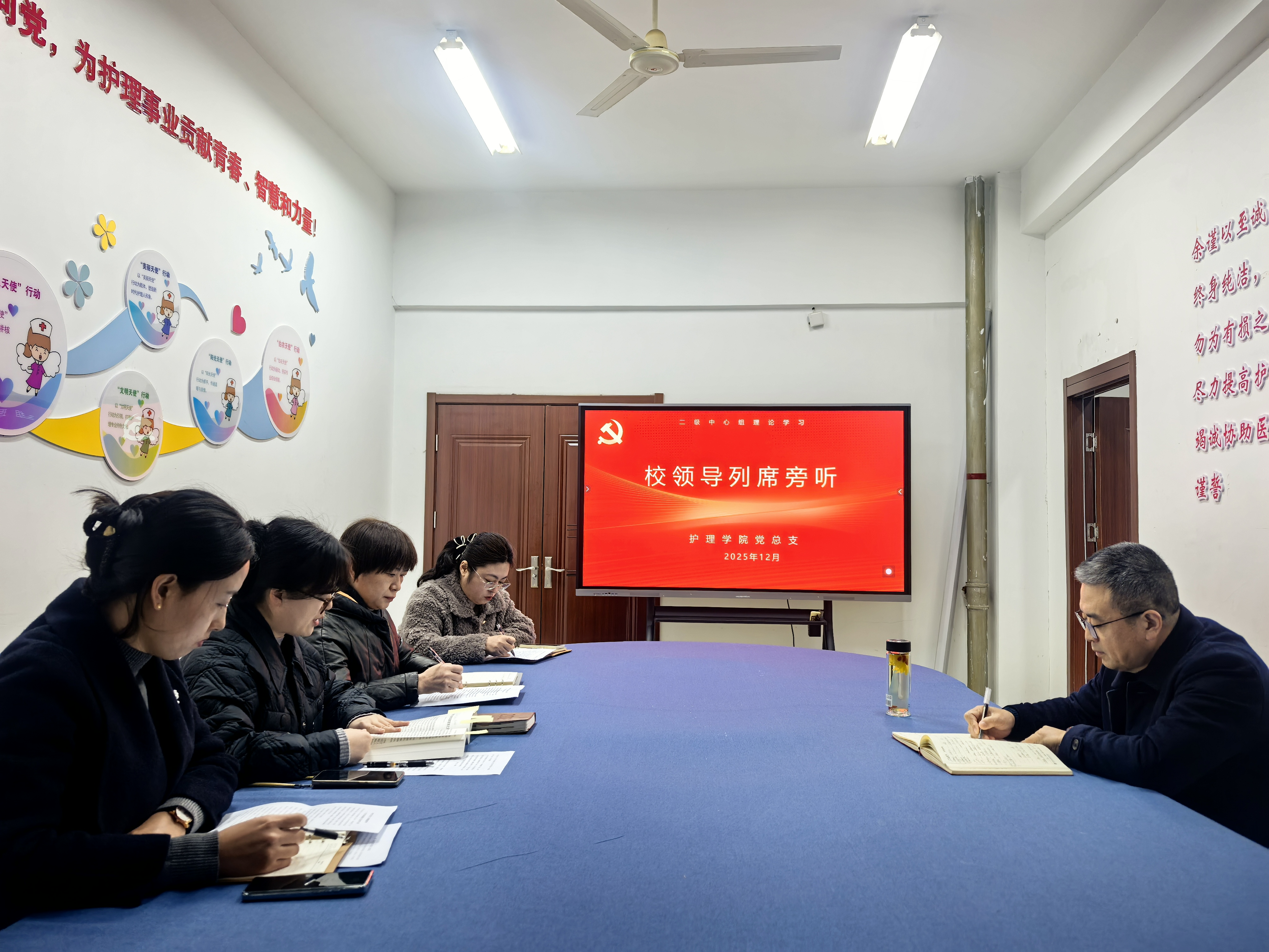 12月18日上午,护理学院党总支召开理论学习中心组学习会,副校长张军到会旁听指导。会议由护理学院党总支书记刘晓苏主持,学院党总支委员参加了会议。