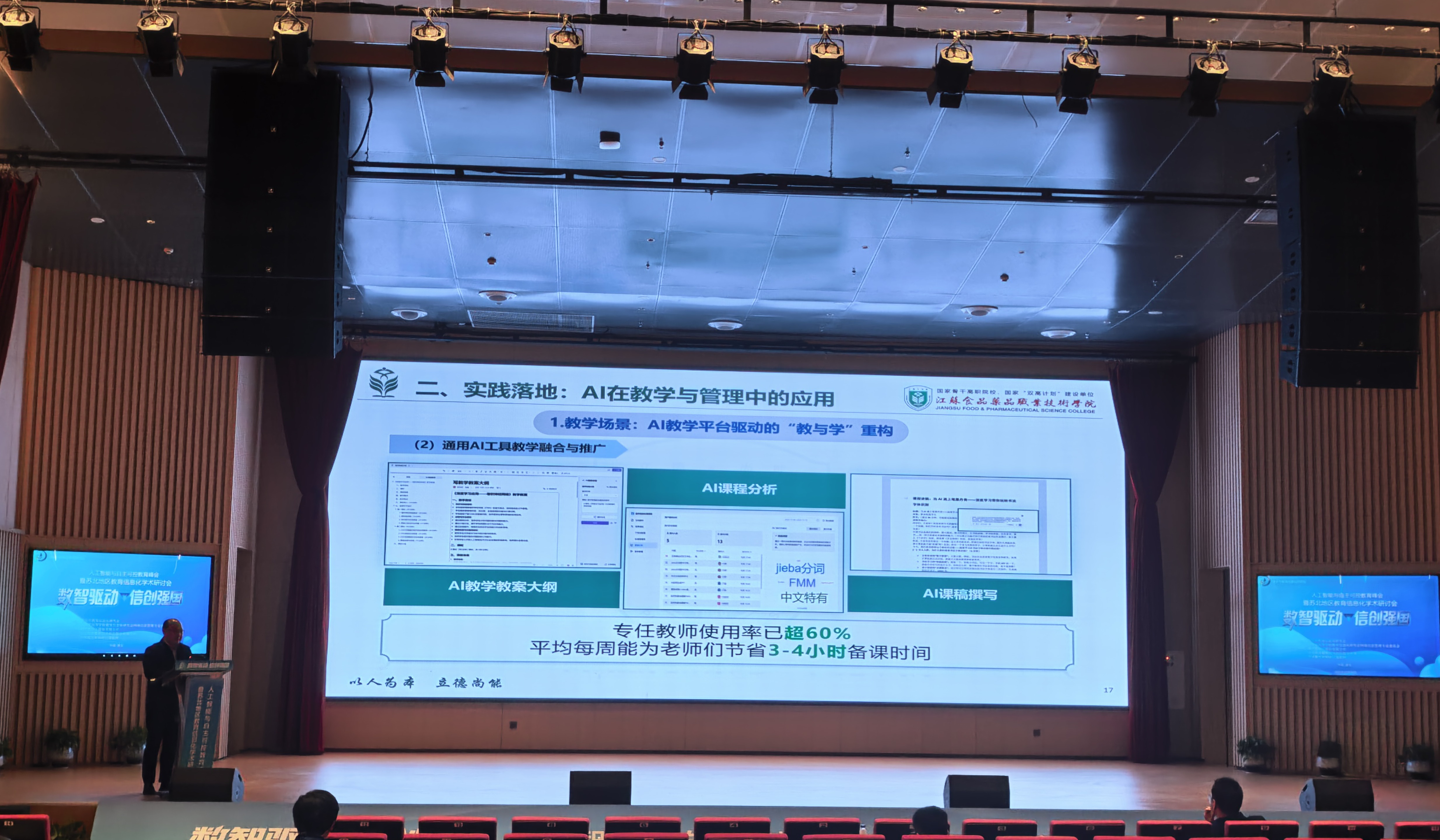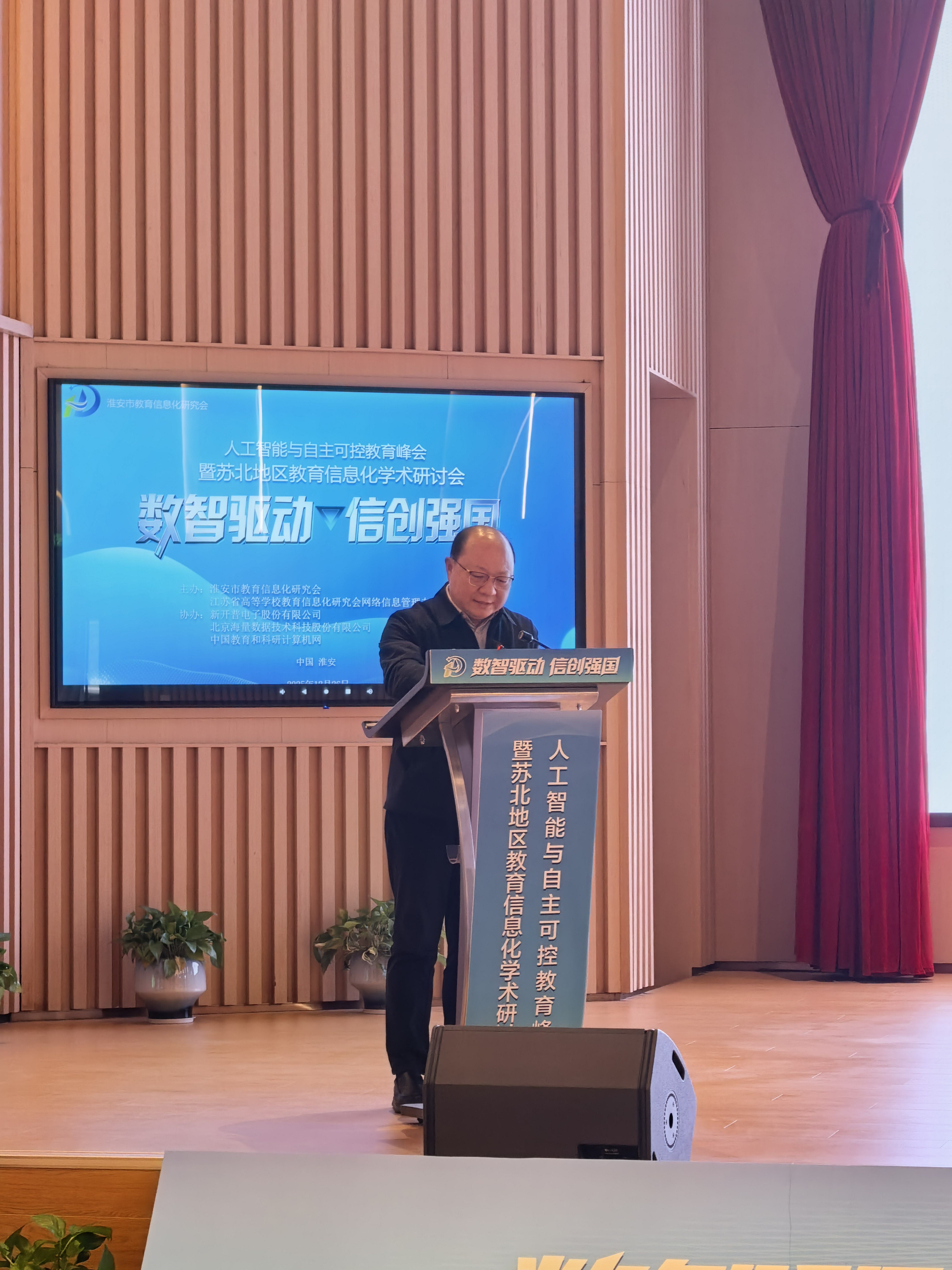 12月26日,人工智能与自主可控教育峰会暨苏北地区教育信息化学术研讨会在淮安召开。本次大会以“数智驱动・信创强国”为主题,汇聚省内外教育信息化领域专家学者及行业代表,共探人工智能与教育教学深度融合的创新路径。我校校长安进受邀参会,并以《AI驱动下的高职院校教学管评研实践与前瞻思考》为题作主题报告,分享学校在教育数字化转型中的探索成果与前瞻思考。