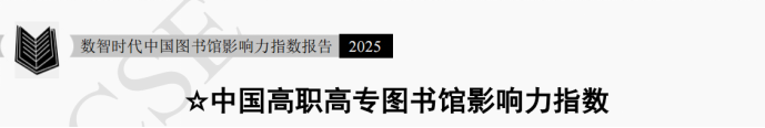 近日,由武汉大学中国科学评价研究中心、数字出版智能服务技术教育部工程研究中心联合发布了《数智时代中国图书馆影响力评价报告(2025)》,报告面向开放网络环境,持续优化“五维一体(BWNSA)”影响力分析模型,围绕基础实力、网站影响力、新媒体影响力、社会影响力、学术影响力五个维度,形成对我国图书馆影响力的综合刻画。对全国2919家高校图书馆、1980家(不含港澳台地区公共图书馆)公共图书馆、390家专业图书馆进行评价。我校图书馆在中国高职高专图书馆影响力总排行榜中列255名,获评4星图书馆。