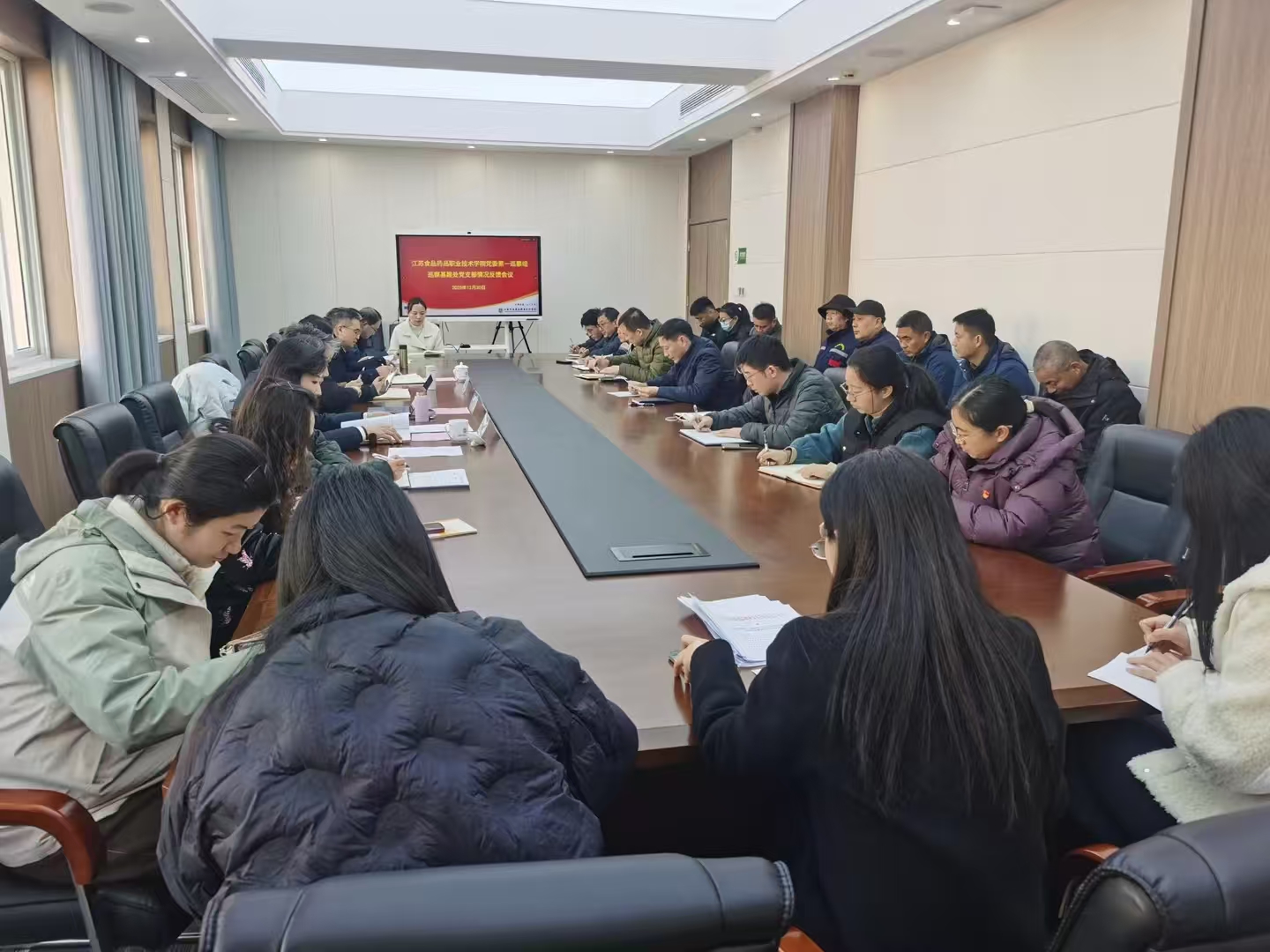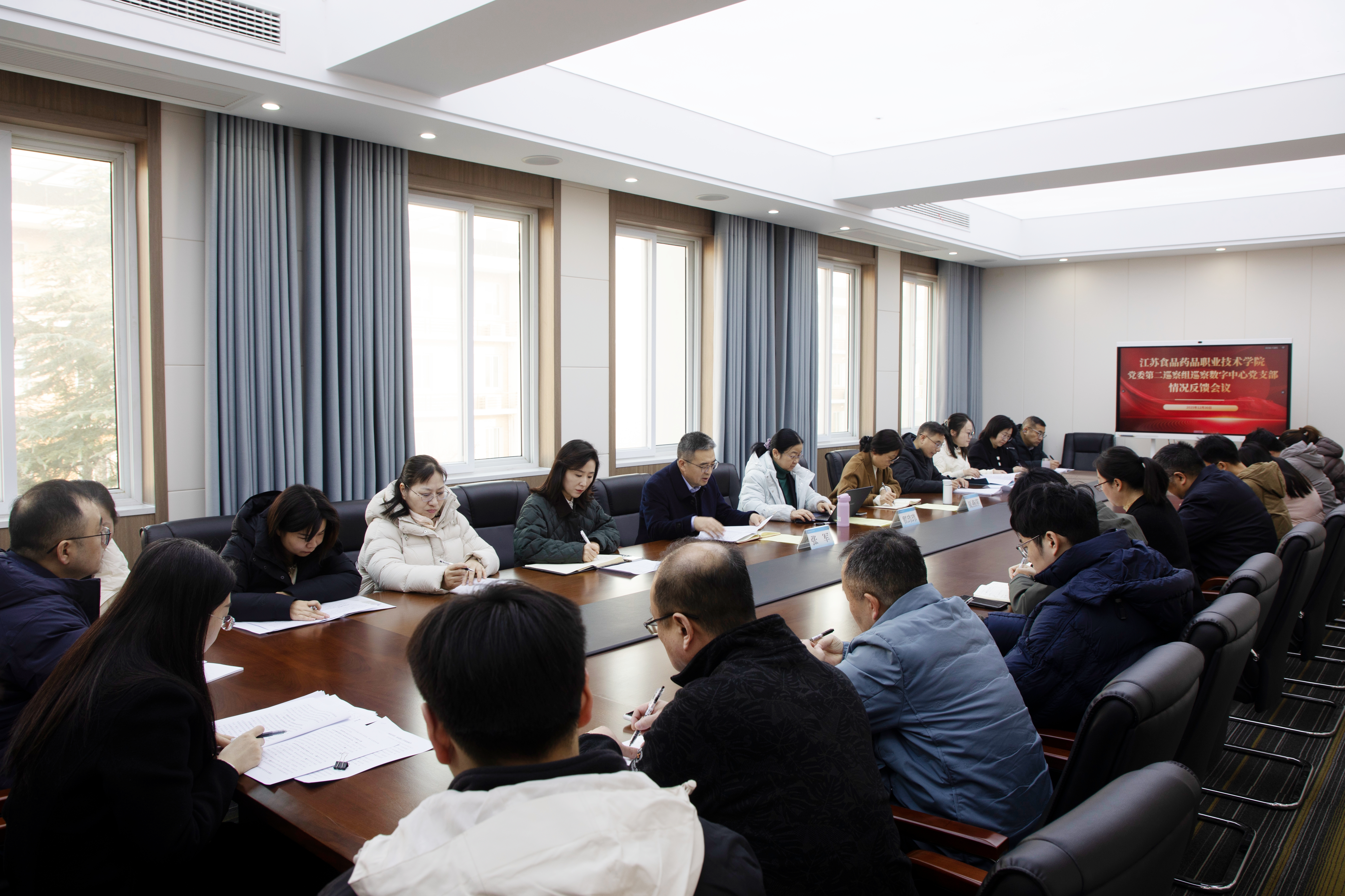 根据学校党委统一部署,我校三届党委第三轮校内巡察反馈工作于12月30日完成。学校党委书记、党委巡察工作领导小组组长翟玮玮出席反馈会议并发表讲话。校纪委书记夏燕萍,党委巡察组组长贾韶千、张军,以及分管校领导焦宇知出席会议。会议由各被巡察党组织主要负责人分别主持。