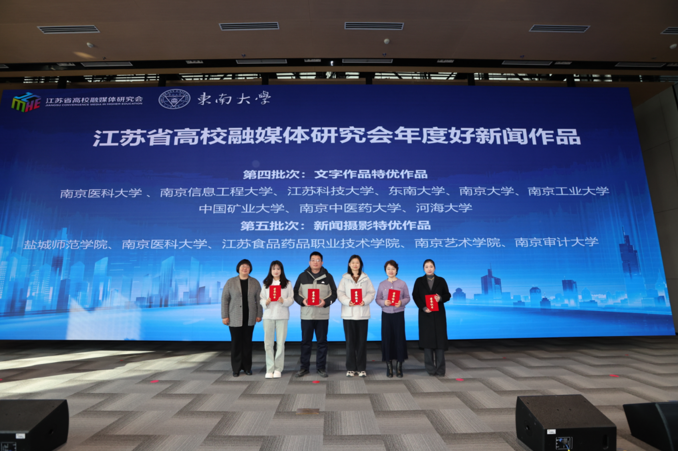 1月23日,江苏省高校融媒体研究会2025年年会在东南大学举行。本次年会以“深化融媒变革,赋能教育强国”为主题,来自全省70所高校的宣传部负责人、融媒体工作代表90余人齐聚一堂、凝聚共识、共话发展。大会现场公布江苏省高校2025年好新闻作品,我校五项作品成功入选。