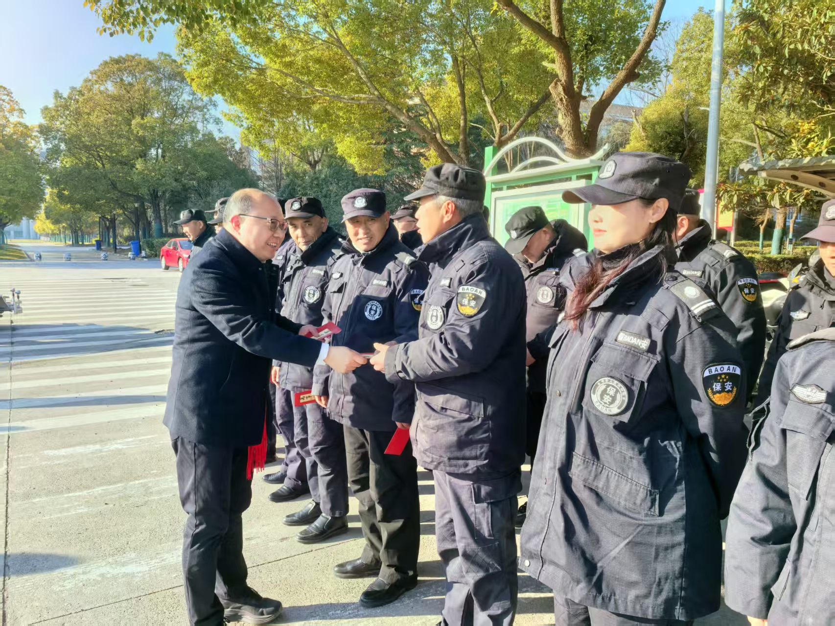 “大家辛苦了,给你们拜年了!”每到一处,安进都与值班人员亲切交谈,详细询问假期工作安排与各项运行的保障情况,并送上精心准备的慰问品。他对大家在万家团圆的时刻,舍小家、顾大家,以高度的责任感守护校园安全稳定、确保各项服务保障正常运转表示衷心感谢。