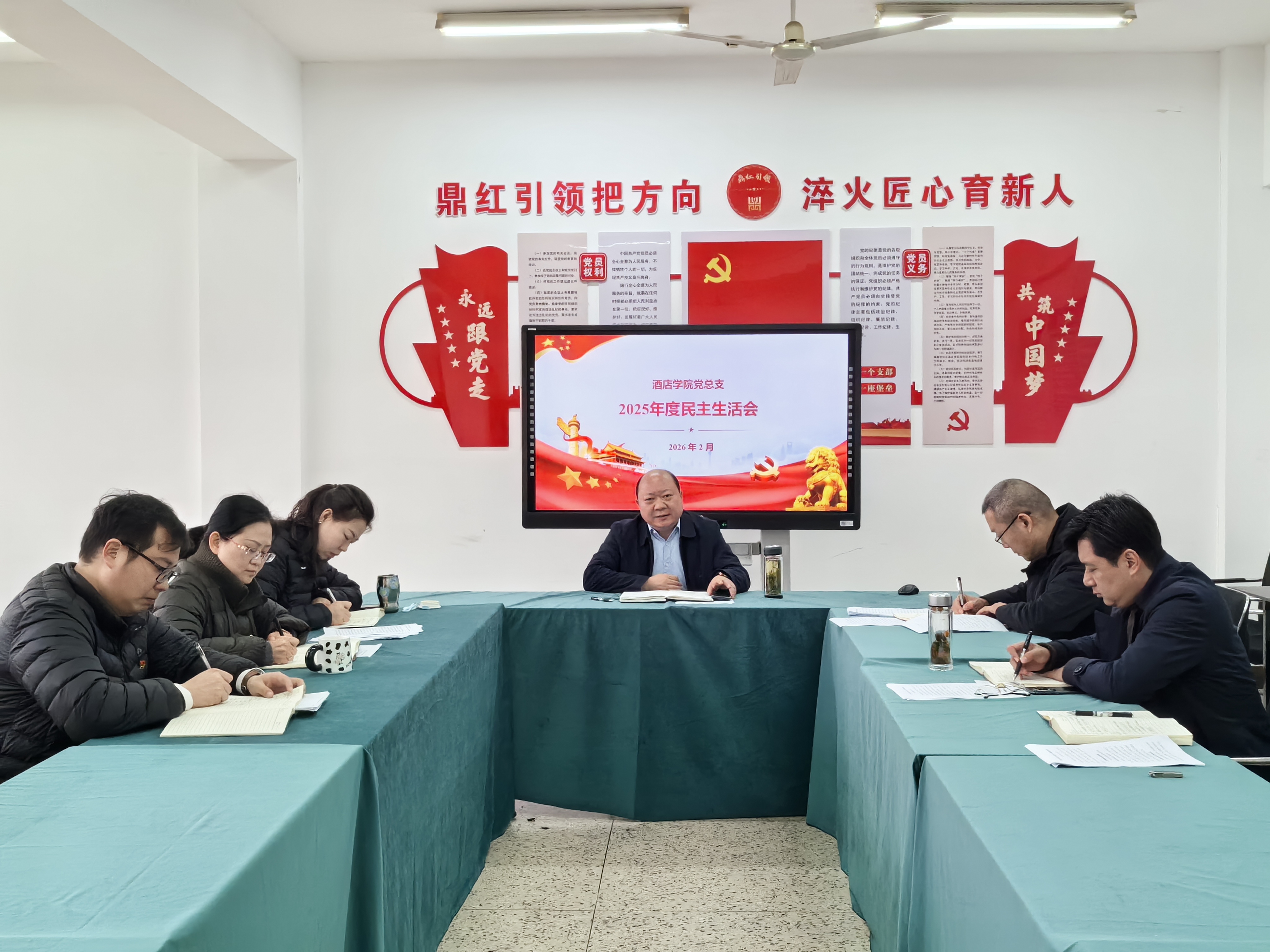 2月27日上午,酒店学院党总支召开2025年度民主生活会,校长安进到会指导,学院党总支书记拾以超主持会议,全体班子成员参加会议。