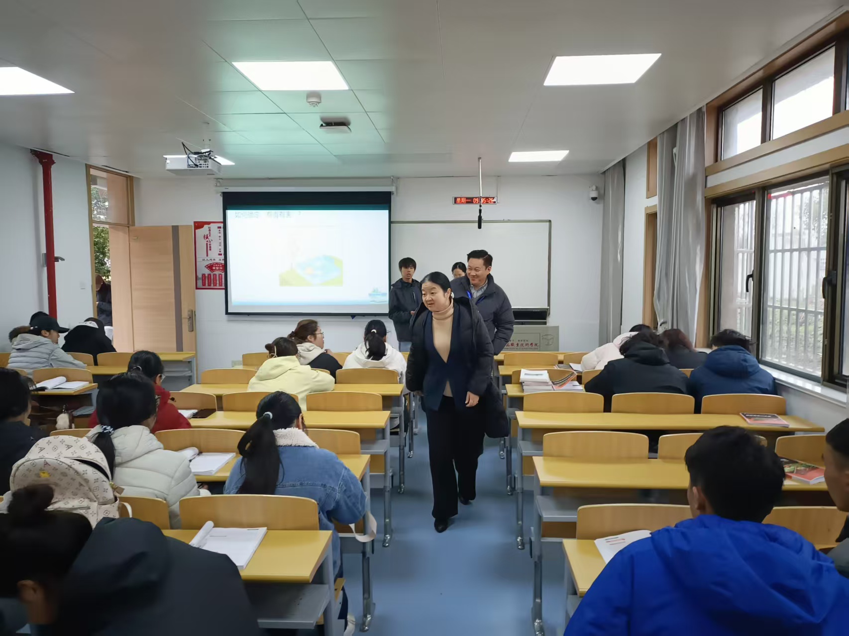 调研期间,翟玮玮首先深入教学一线,全程聆听了“开学第一课”。课后,她与授课教师面对面交流,对教学准备和课堂表现给予肯定,并就课堂教学质量提升、教学关键要素改革等方面提出指导性建议。
