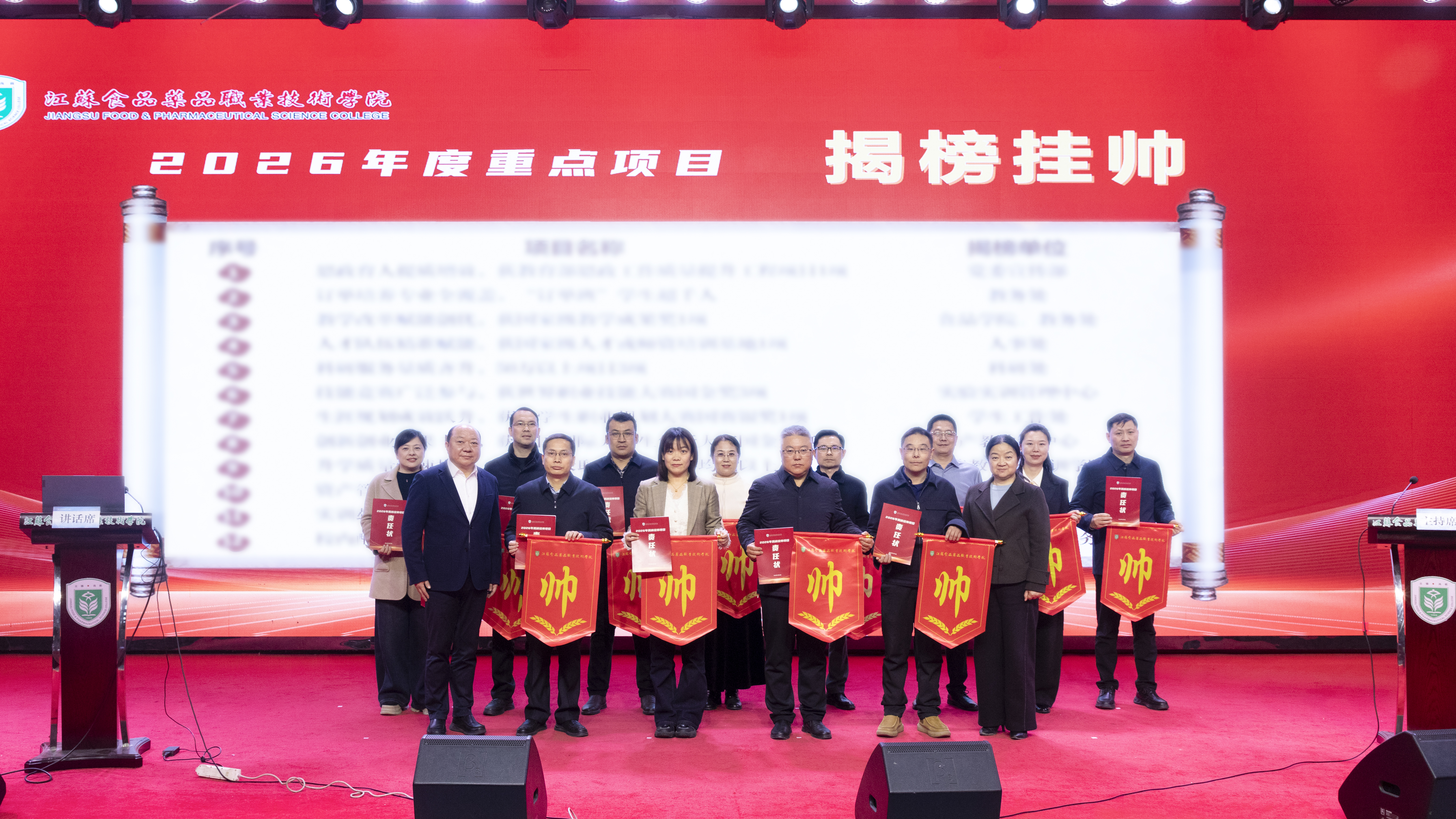 为全面激发干事创业活力,会上举行了2026年重点项目揭榜挂帅仪式,党委宣传部、人事处等12个单位负责同志现场“揭榜”,翟玮玮、安进分别为揭榜单位授帅旗、颁发责任状。3位项目代表分别作表态发言,目标明确、措施务实,为全校上下形成“比学赶超、真抓实干”的浓厚氛围树立了榜样。