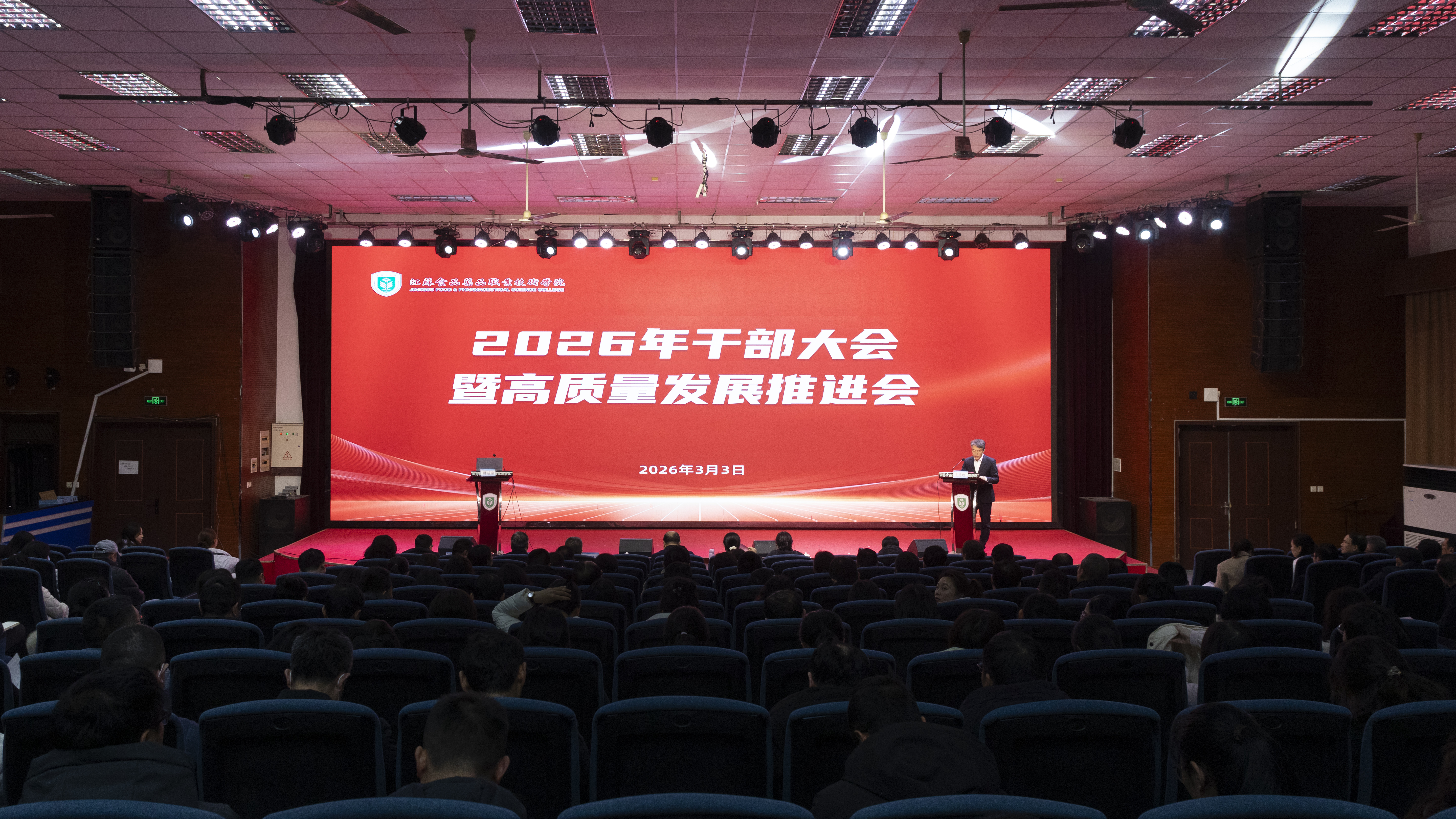 3月3日下午,学校2026年干部大会暨高质量发展推进会在教学楼C115召开。全体党委班子成员、副科级以上干部、专业教研室主任、党支部书记、辅导员等参加会议。会议由副校长贾韶千主持。
